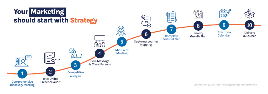 Once we complete our work we’ll schedule a time to meet with you and your team to deliver the items above and map of your personalized marketing operating system. From this point, you’ll have several options for how you put our recommendations into action. We can teach you or your team to do it or we can do it for you.