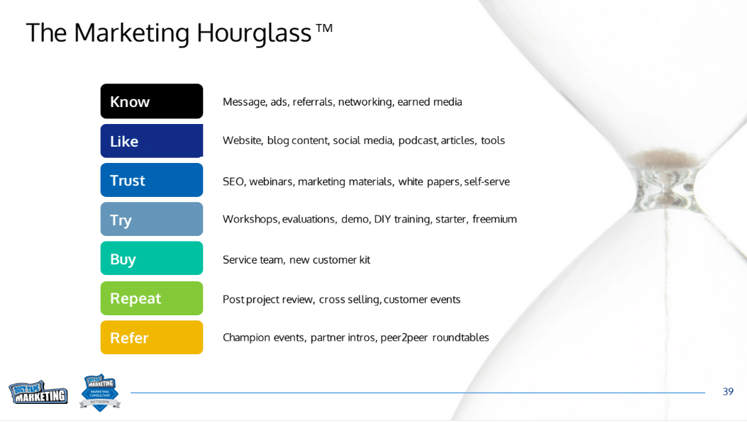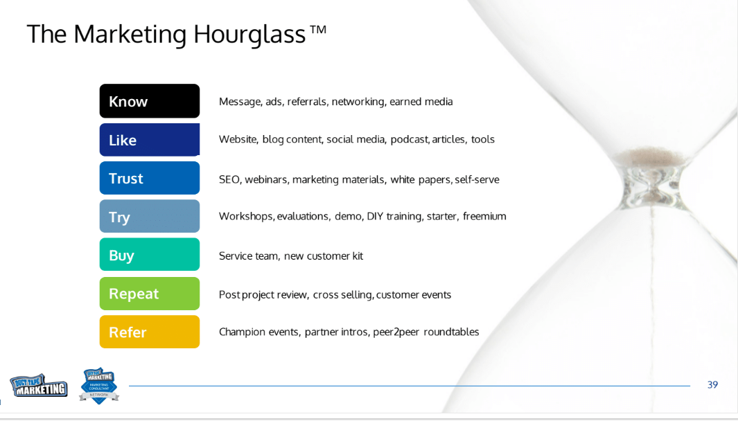 - To see a few of the many slides Lightboard created for me, scroll to the bottom of this post. You can view larger versions here: Cover, System and Methodology description and Marketing Hourglass slide.